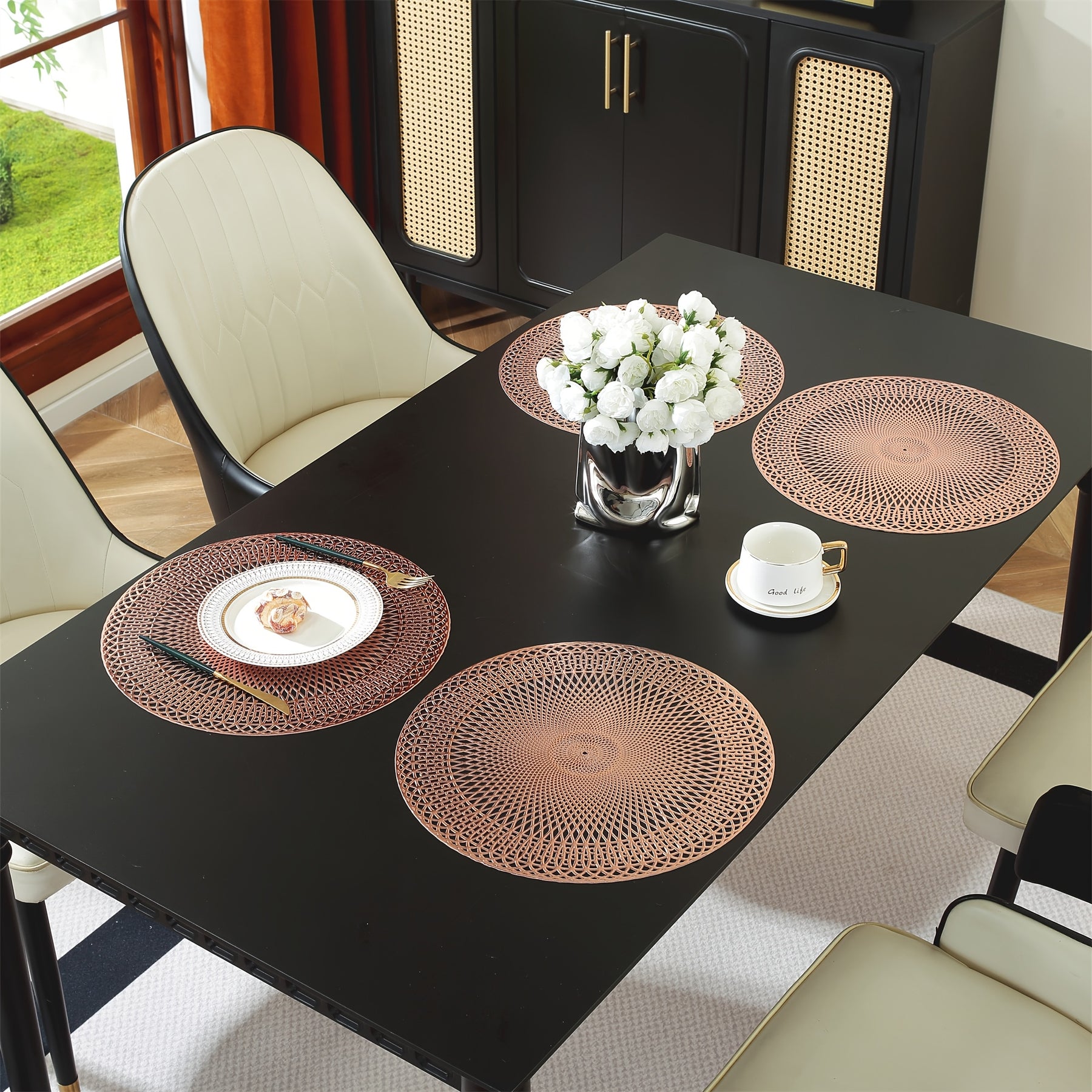 Upgrade your dining space with the PVC Placemats Round Geometric Table Mats – practical, durable, and designed to impress at any occasion..