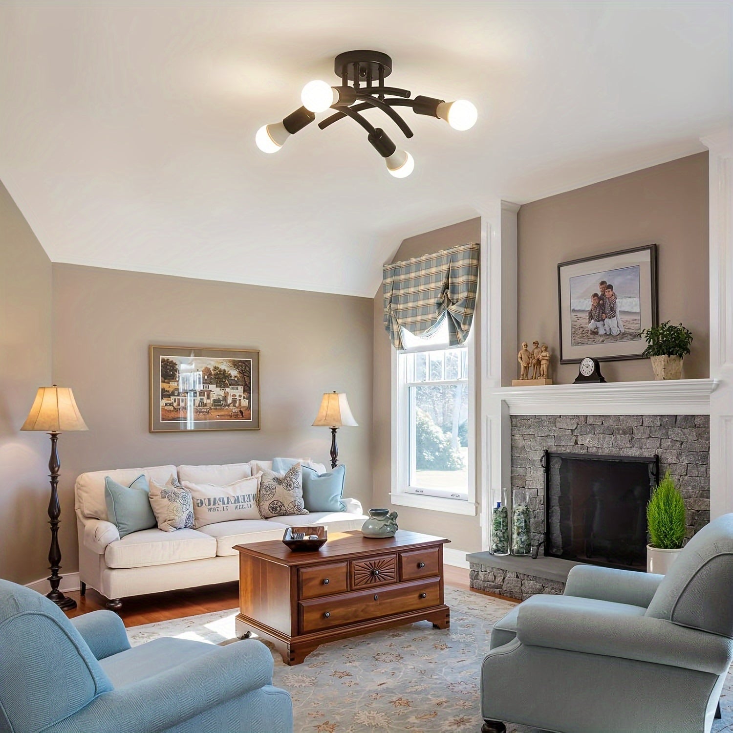 Add a bold industrial flair to your home with this 4-light semi flush mount ceiling fixture. Designed with curved metal arms and a matte black finish, it creates a modern sputnik-style look perfect for kitchens, bedrooms, hallways, or dining spaces. Pair it with vintage Edison or LED bulbs to complete the warm industrial aesthetic.