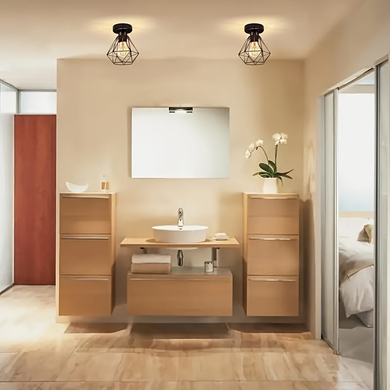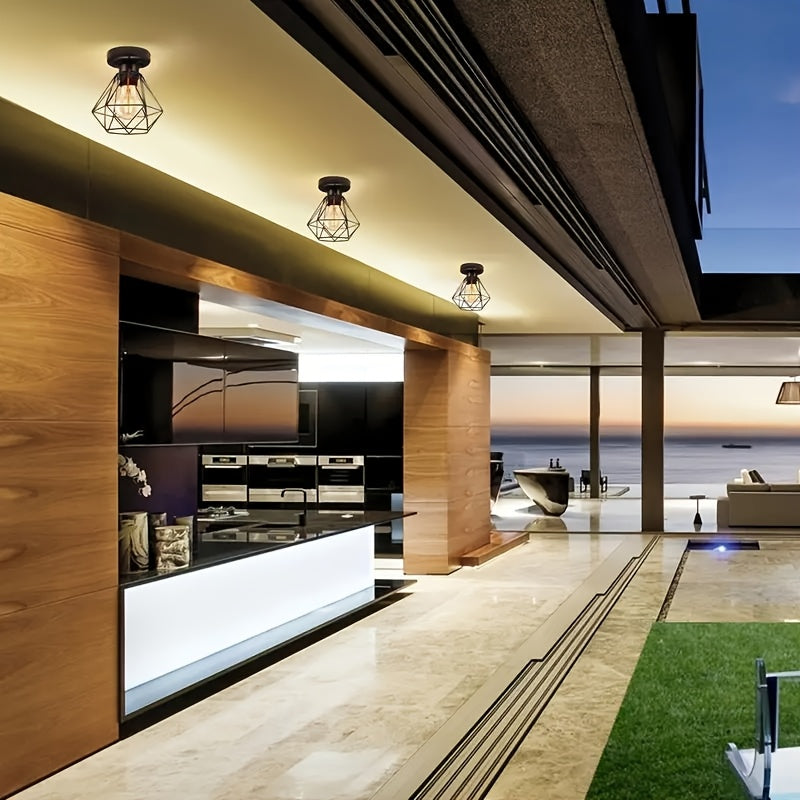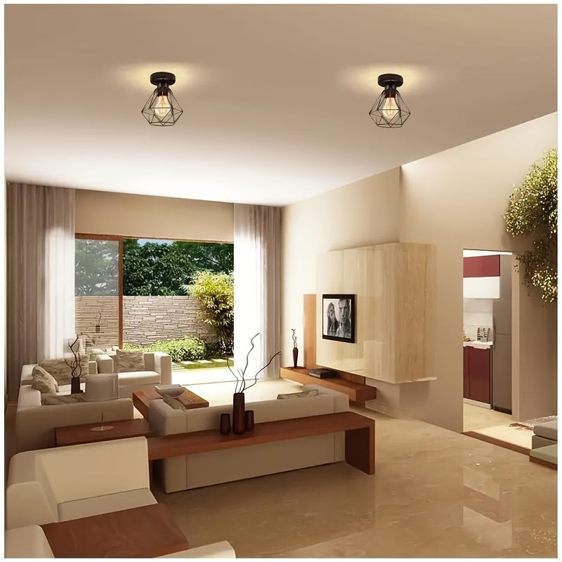The Black Industrial Ceiling Light features a striking geometric cage design that adds a touch of vintage style to any interior. Perfect for hallways, kitchens, dining rooms, or cafés, this semi flush mount light pairs beautifully with Edison or LED bulbs for a warm industrial glow. Compact yet eye-catching, it’s ideal for both modern and rustic spaces.