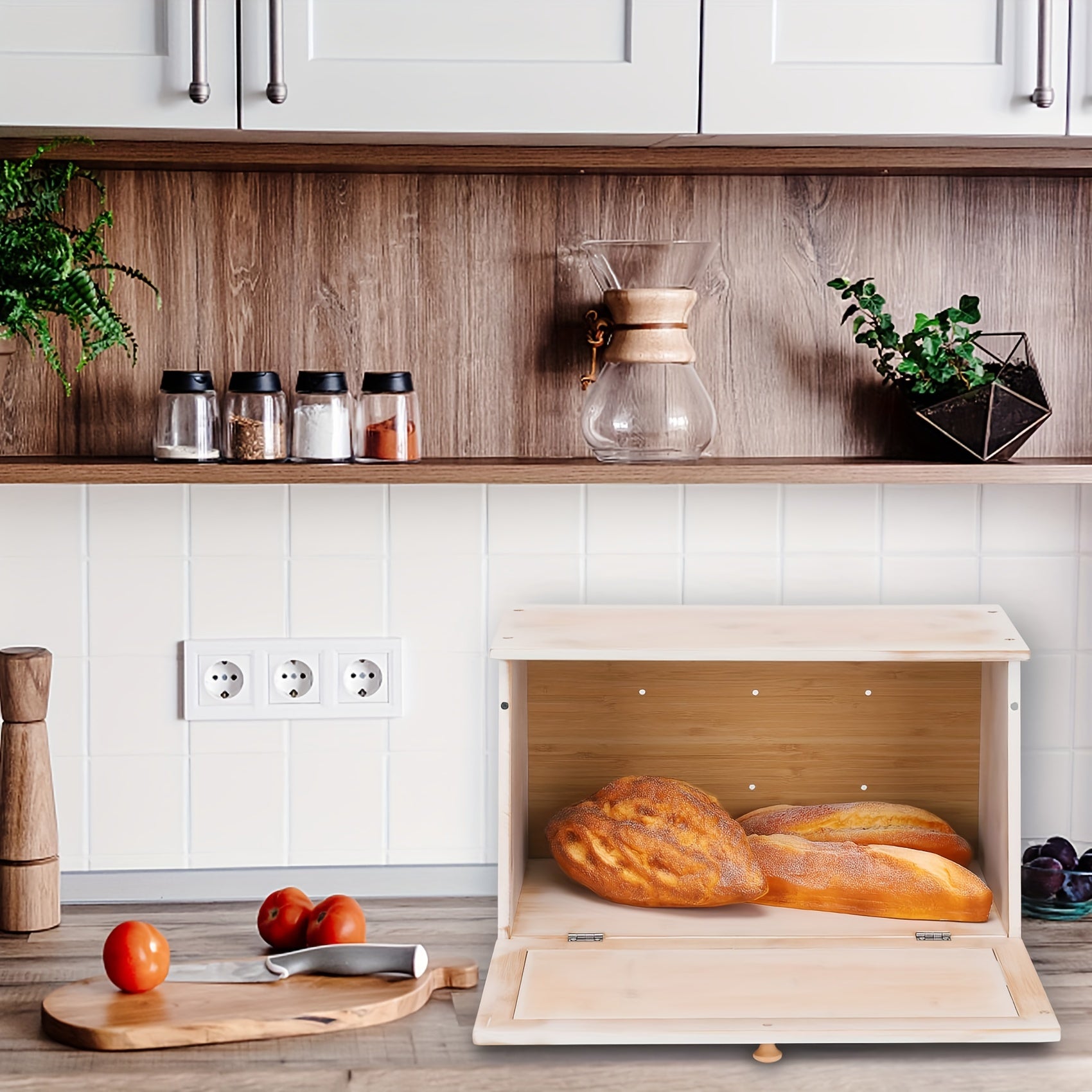 Add a touch of rustic charm to your kitchen with this vintage wooden bread box – a practical and stylish solution for bread storage.